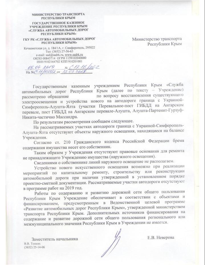 айГражданинОтправлено 15.03.2019: "Служба автомобильных дорог Республики Крым"