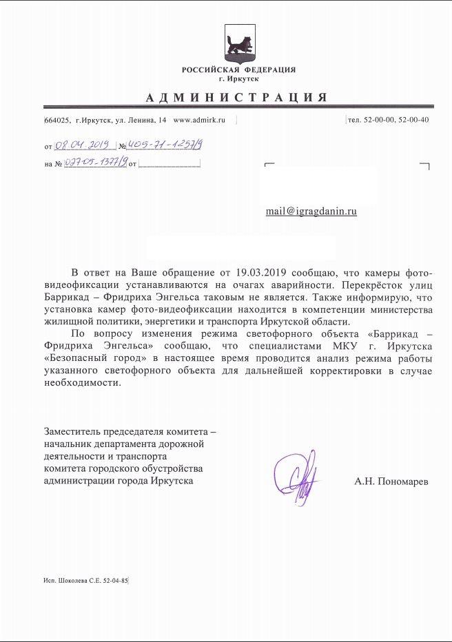 айГражданинОтправлено 19.03.2019: "Администрация города Иркутска"