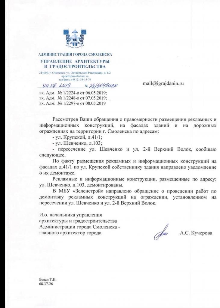айГражданинОтправлено 06.07.2019: "Администрация города Смоленска"