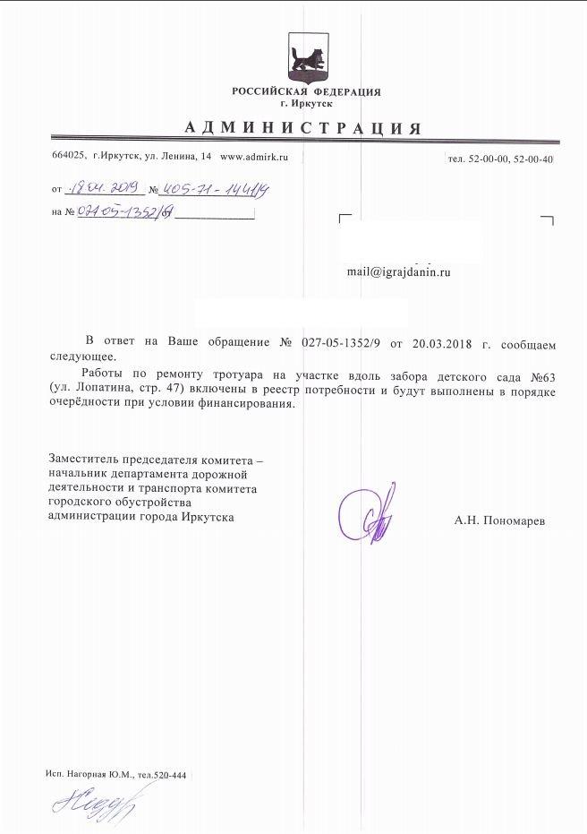 айГражданинОтправлено 15.03.2019: "Администрация города Иркутска"