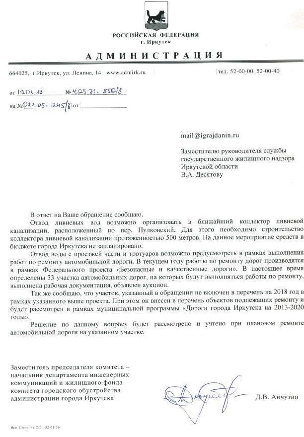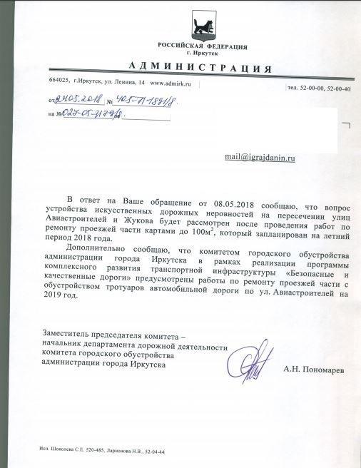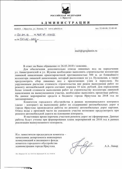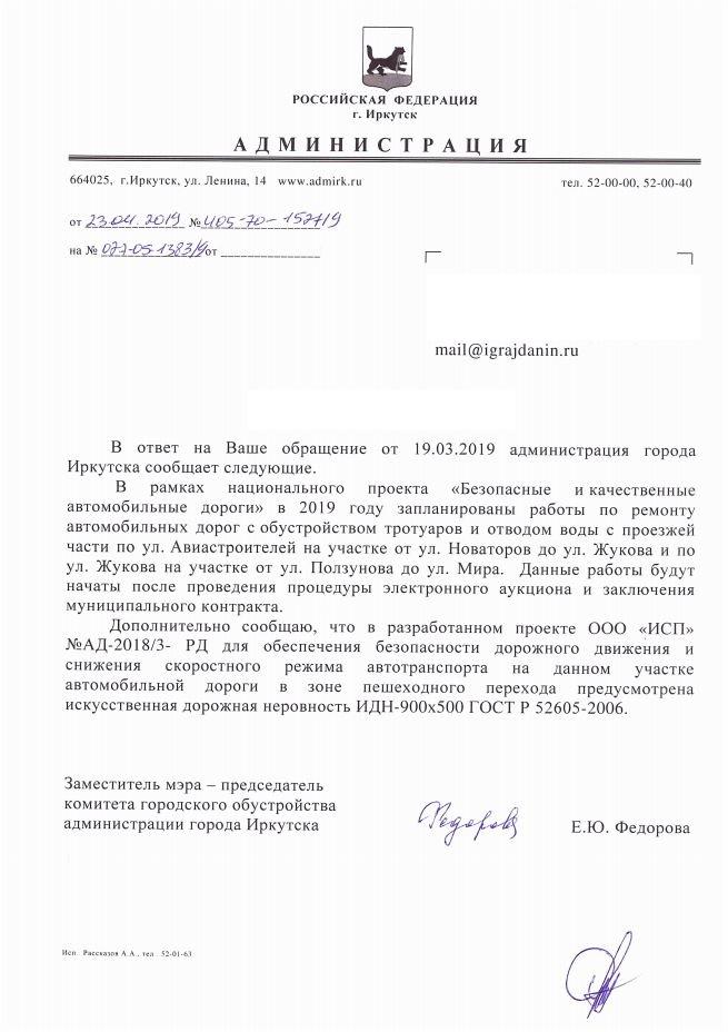 айГражданинОтправлено 19.03.2019: "Администрация города Иркутска"