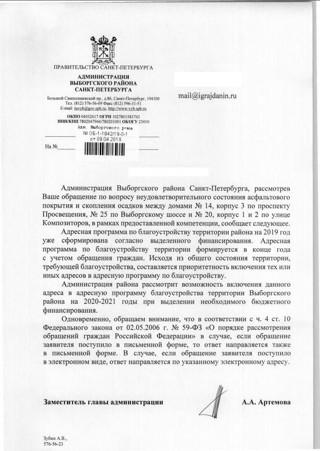айГражданинОтправлено 19.03.2019: "Администрация Выборгского района Санкт-Петербурга"