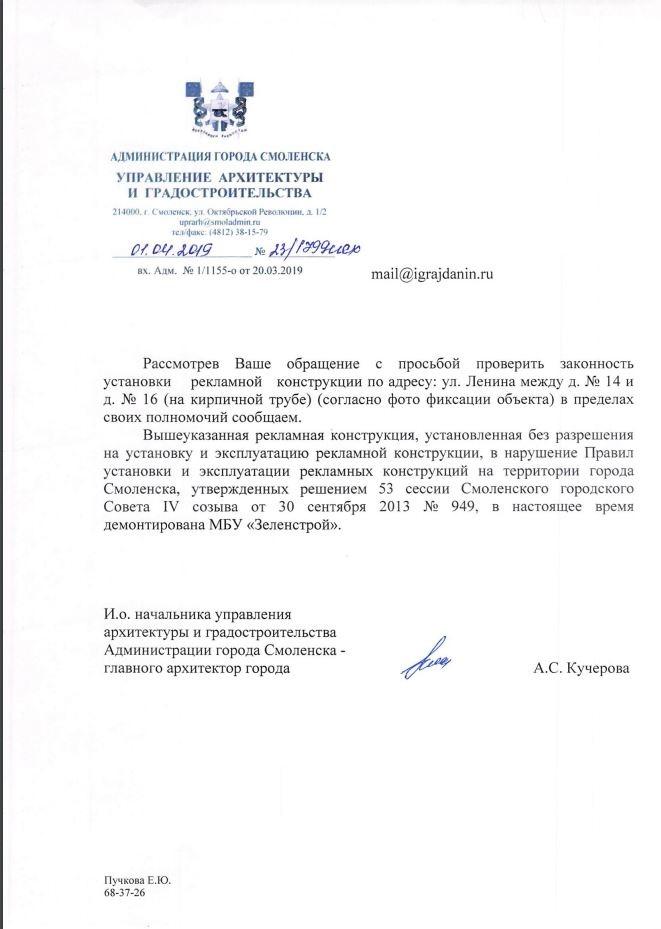 айГражданинОтправлено 19.03.2019: "Администрация города Смоленска"