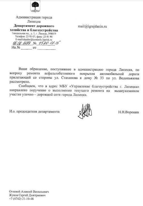 айГражданинОтправлено 21.03.2019: "Администрация города Липецка"