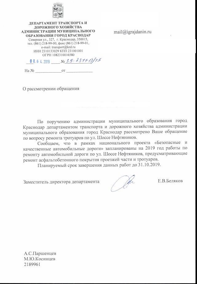 айГражданинОтправлено 21.03.2019: "Администрация муниципального образования г. Краснодар"