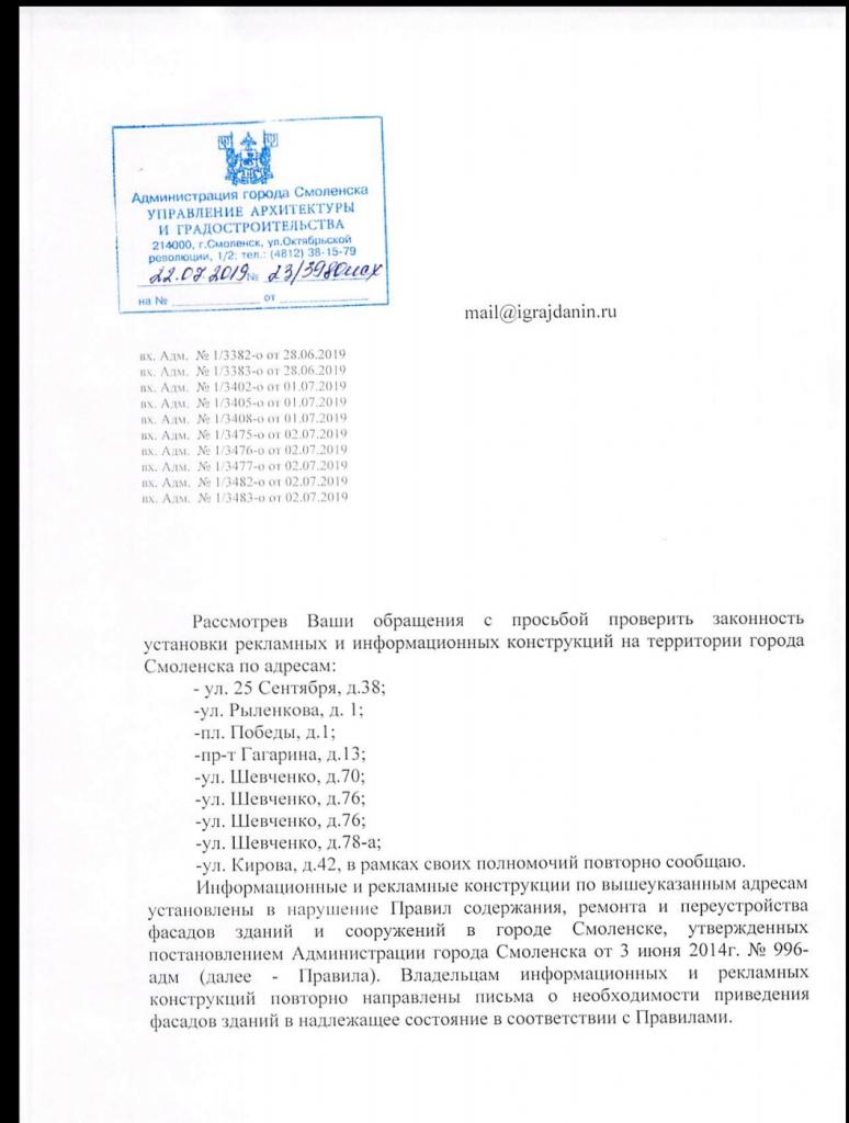 айГражданинОтправлено 02.07.2019: "Администрация города Смоленска"