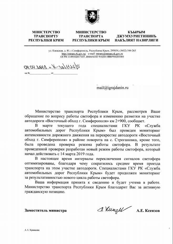 айГражданинОтправлено 22.03.2019: "Министерство транспорта Республики Крым"