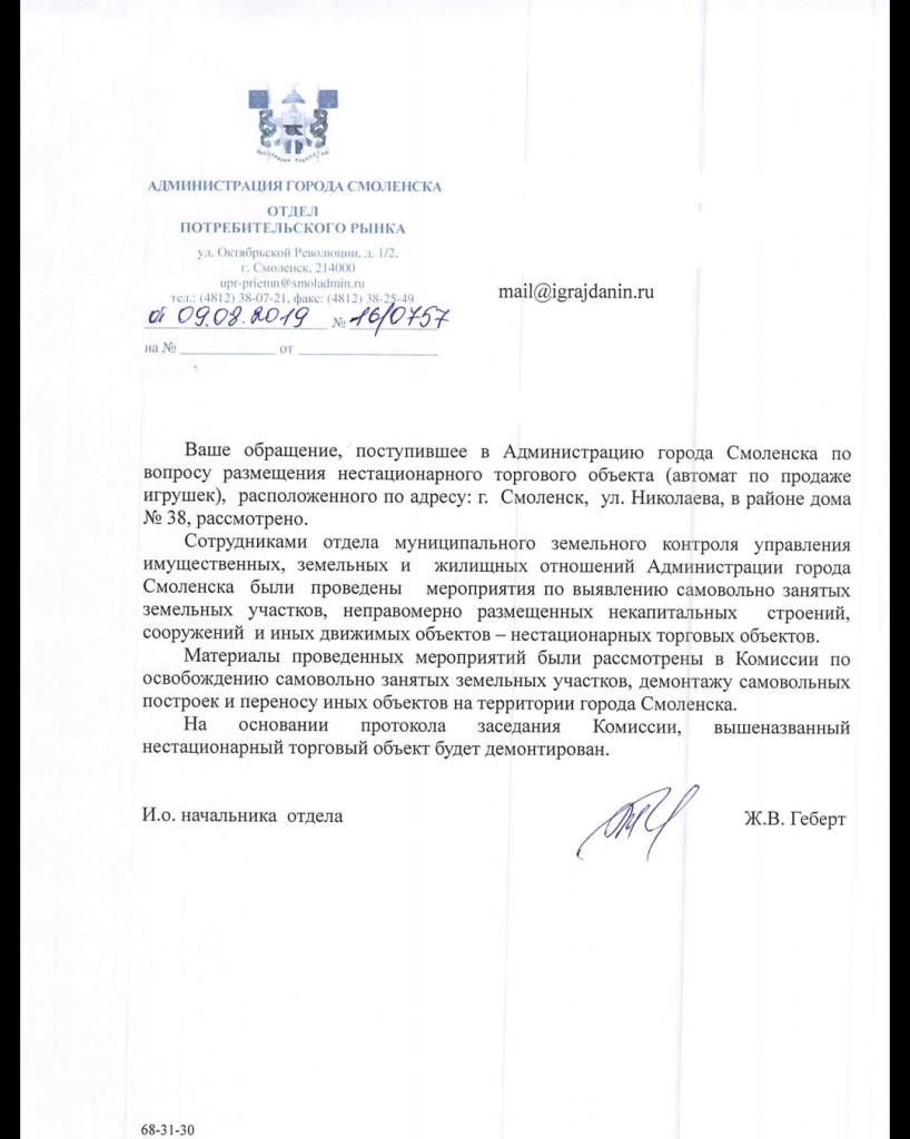 айГражданинОтправлено 30.07.2019: "Администрация города Смоленска"