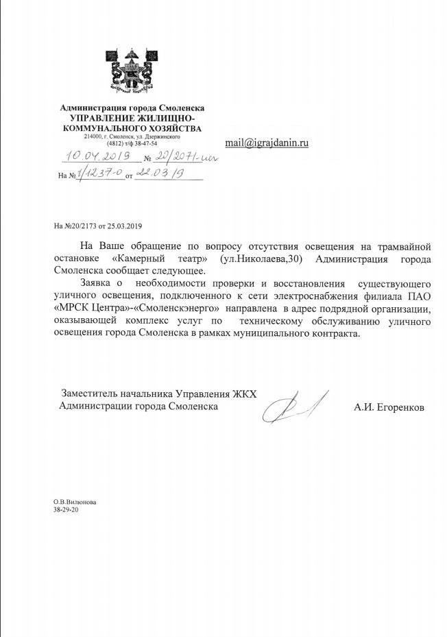 айГражданинОтправлено 22.03.2019: "Администрация города Смоленска"