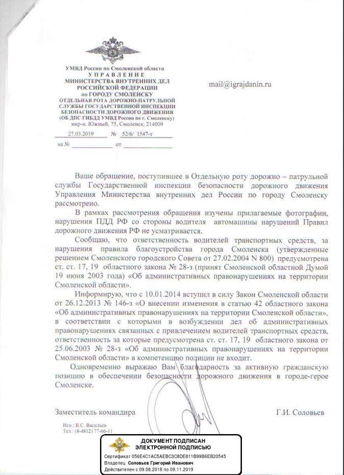 айГражданинОтправлено 22.03.2019: "УГИБДД УМВД России по Смоленской области"
