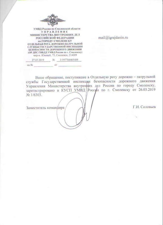 айГражданинОтправлено 25.03.2019: "УГИБДД УМВД России по Смоленской области"