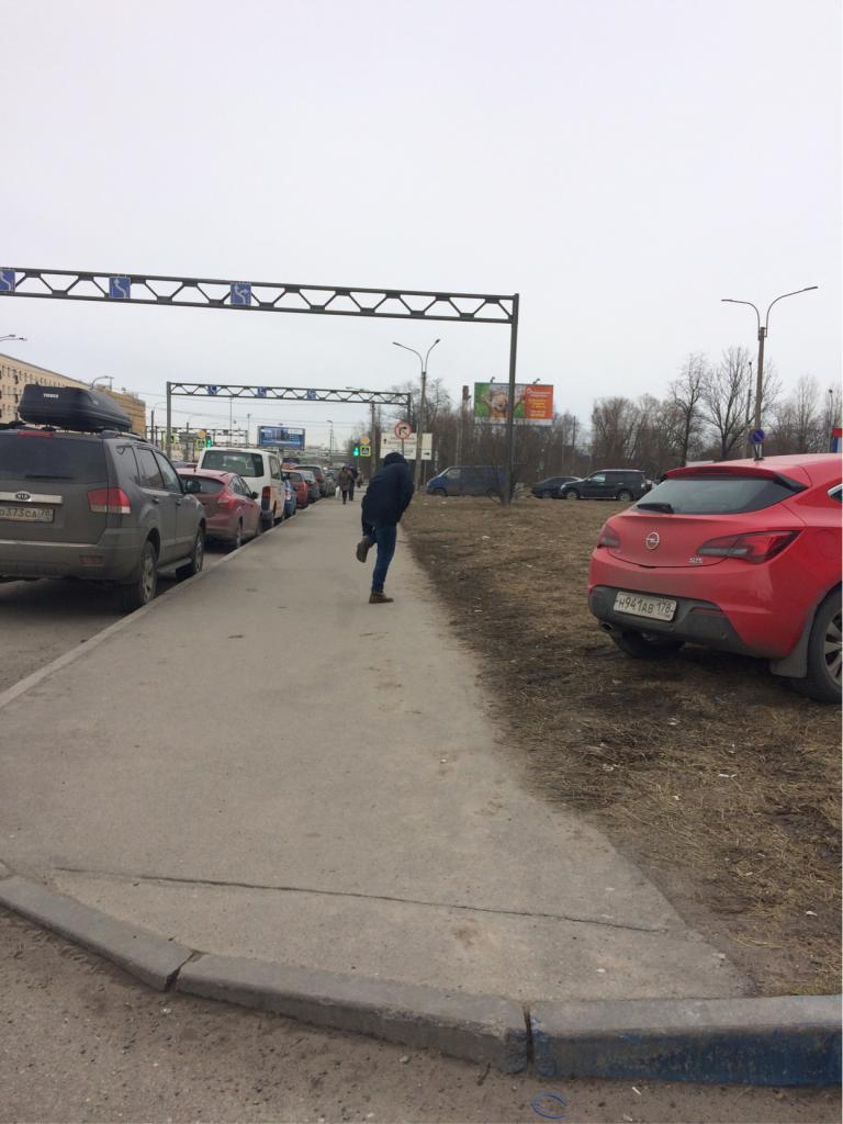 Автомобили паркуются на газоне. Нужно ограждение, чтобы исключить парковку.