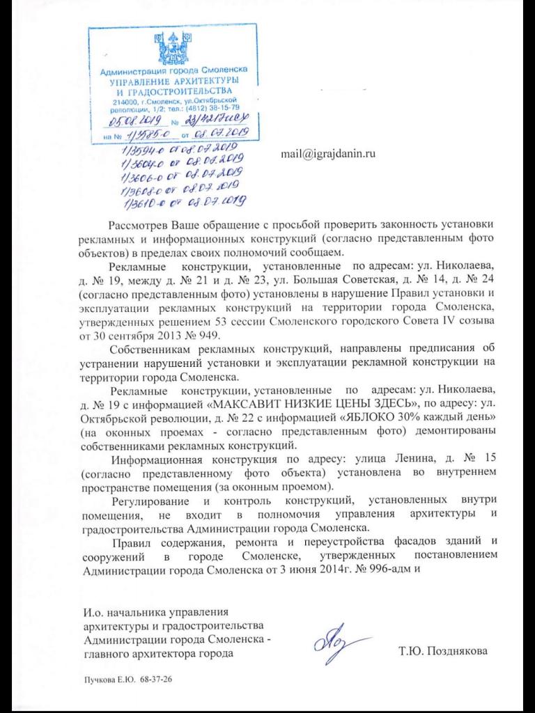 айГражданинОтправлено 06.07.2019: "Администрация города Смоленска"