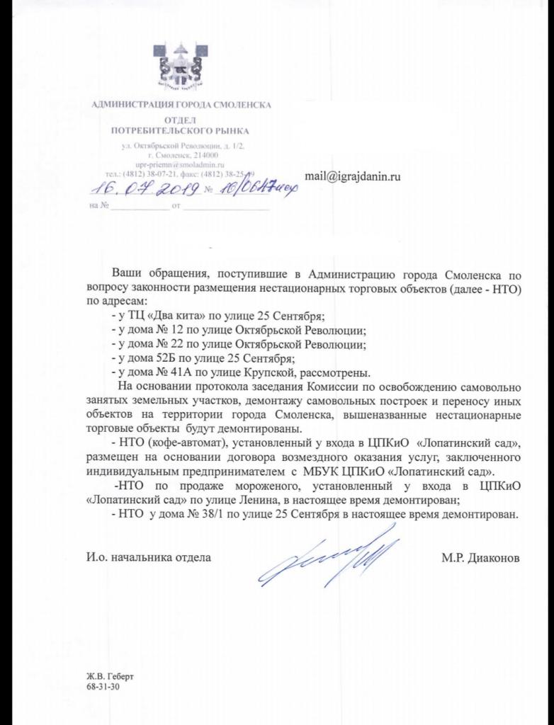 айГражданинОтправлено 06.07.2019: "Администрация города Смоленска"