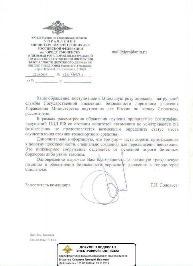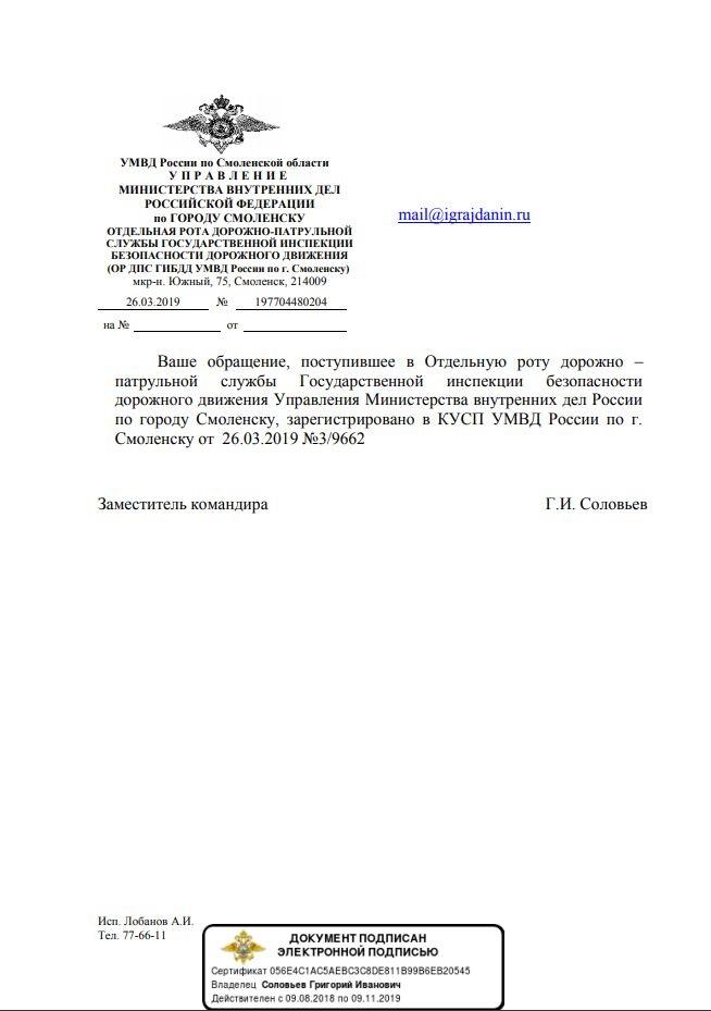 айГражданинОтправлено 26.03.2019: "УГИБДД УМВД России по Смоленской области"