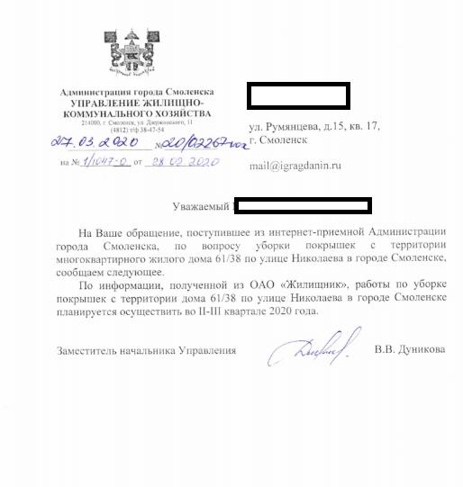айГражданинОтправлено 09.01.2020: "Администрация города Смоленска"
