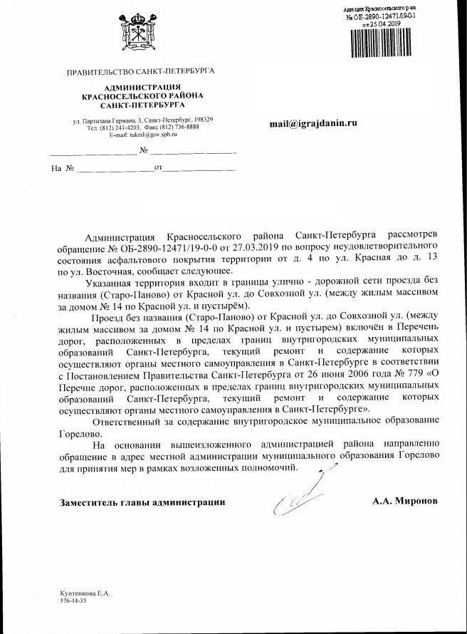 айГражданинОтправлено 25.03.2019: "Администрация Красносельского района Санкт-Петербурга"