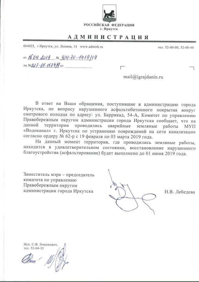 айГражданинОтправлено 25.03.2019: "Администрация города Иркутска"
