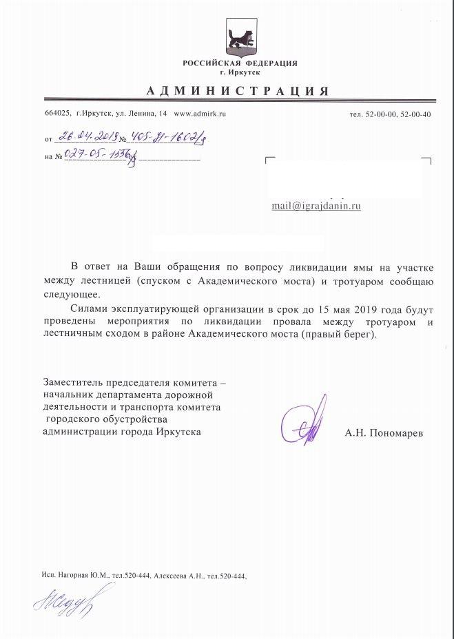 айГражданинОтправлено 26.03.2019: "Администрация города Иркутска"