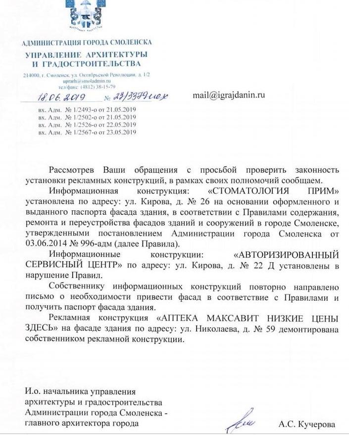айГражданинОтправлено 21.05.2019: "Администрация города Смоленска"