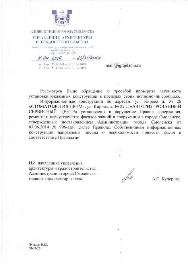 айГражданинОтправлено 01.04.2019: "Администрация города Смоленска"