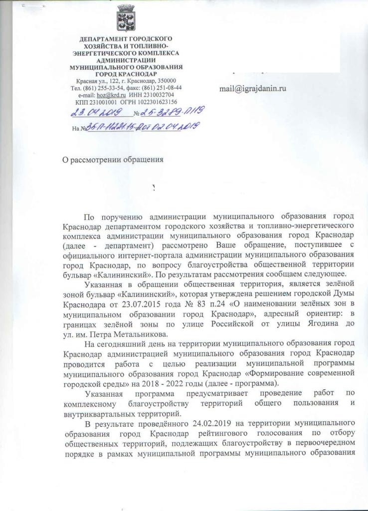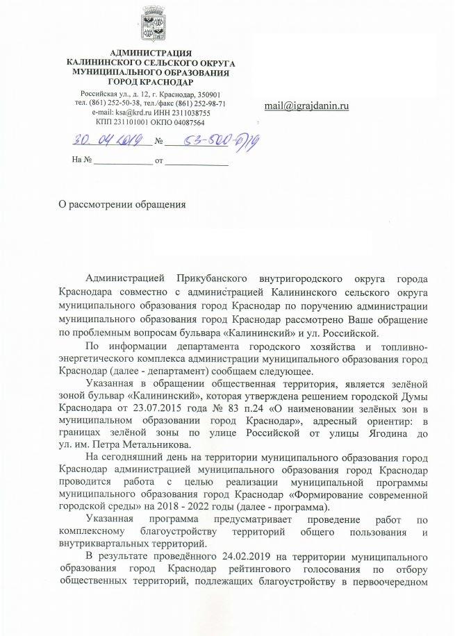айГражданинОтправлено 01.04.2019: "Администрация муниципального образования г. Краснодар"