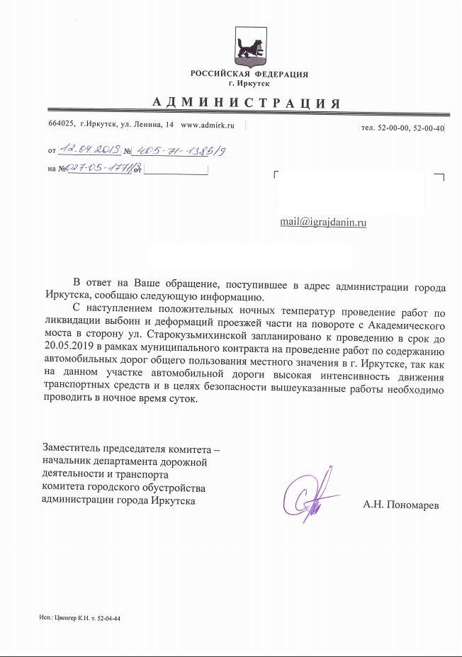 айГражданинОтправлено 01.04.2019: "Администрация города Иркутска"