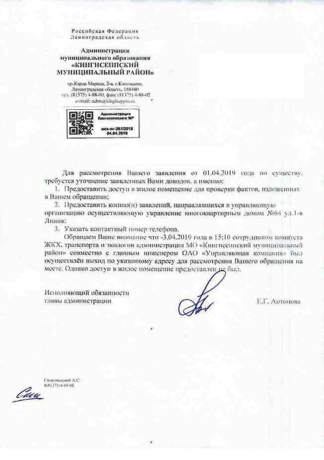 айГражданинОтправлено 01.04.2019: "Администрация муниципального образования Кингисеппский муниципальный район"