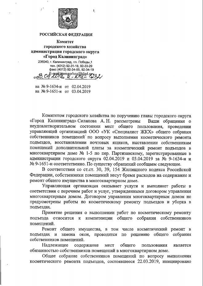 айГражданинОтправлено 01.04.2019: "Администрация городского округа Калининград"