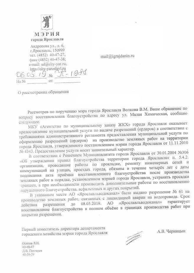 айГражданинОтправлено 04.04.2019: "Мэрия города Ярославля "