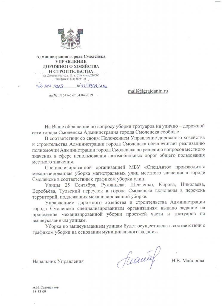 айГражданинОтправлено 30.04.2019: "Администрация города Смоленска"