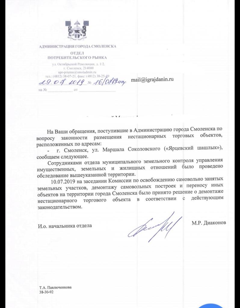 айГражданинОтправлено 21.05.2019: "Администрация города Смоленска"