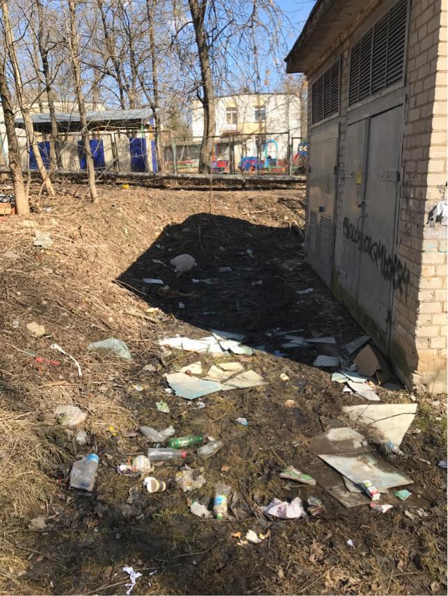 Прошу обратить внимание на территорию вокруг детского сада Росинка. Она полностью завалена мусором и превращена в помойку ( на фото). Прошу как можно быстрее вывести весь мусор и очистить подстанцию ( на фото) от граффити.