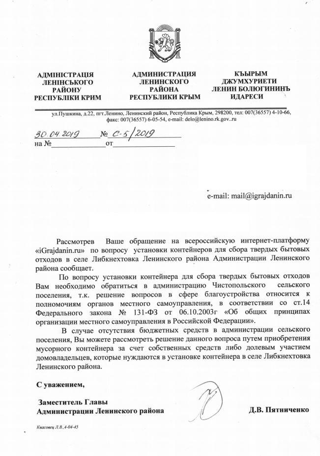 айГражданинОтправлено 08.04.2019: "Администрация Ленинского района Республики Крым"