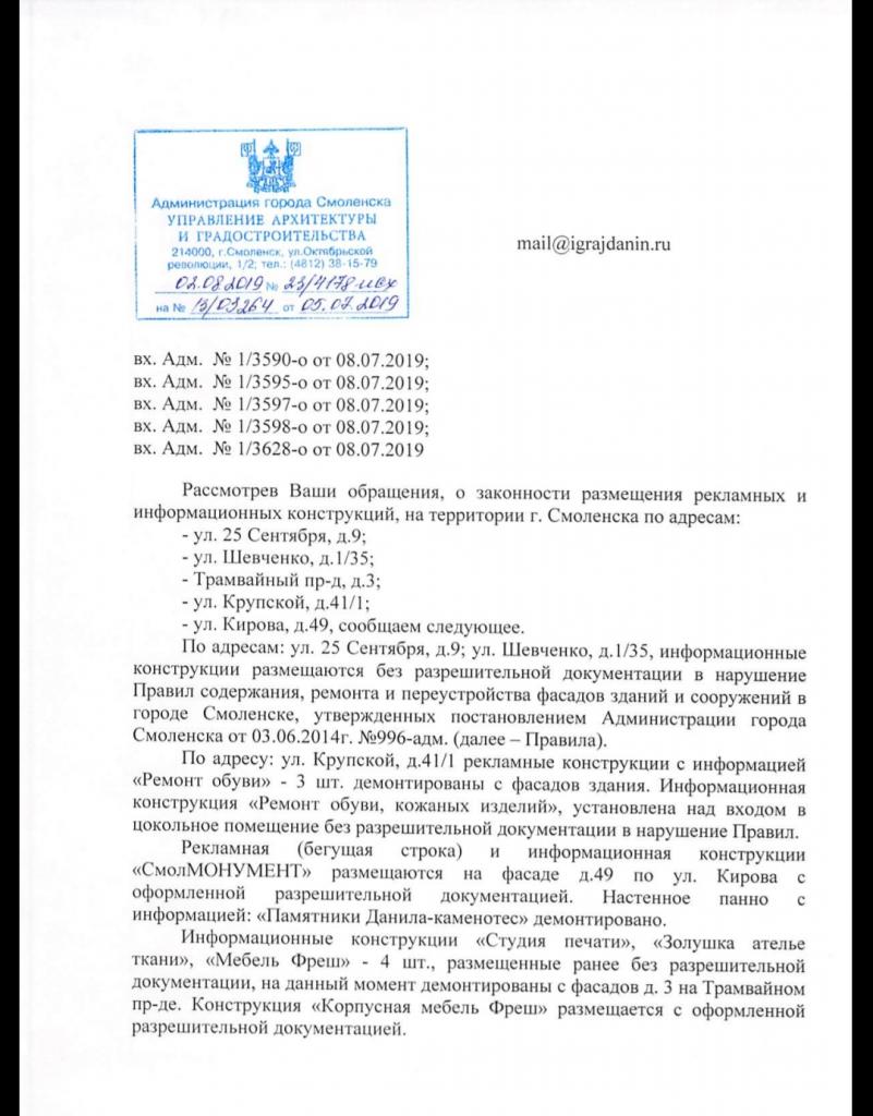 айГражданинОтправлено 06.07.2019: "Администрация города Смоленска"