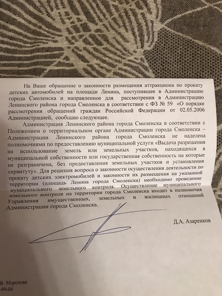 Максим ПрокоповНа основании ответа из вложения, прошу перенаправить обращение в управление имущественных, земельных и жилищных отношений администрации города Смоленска