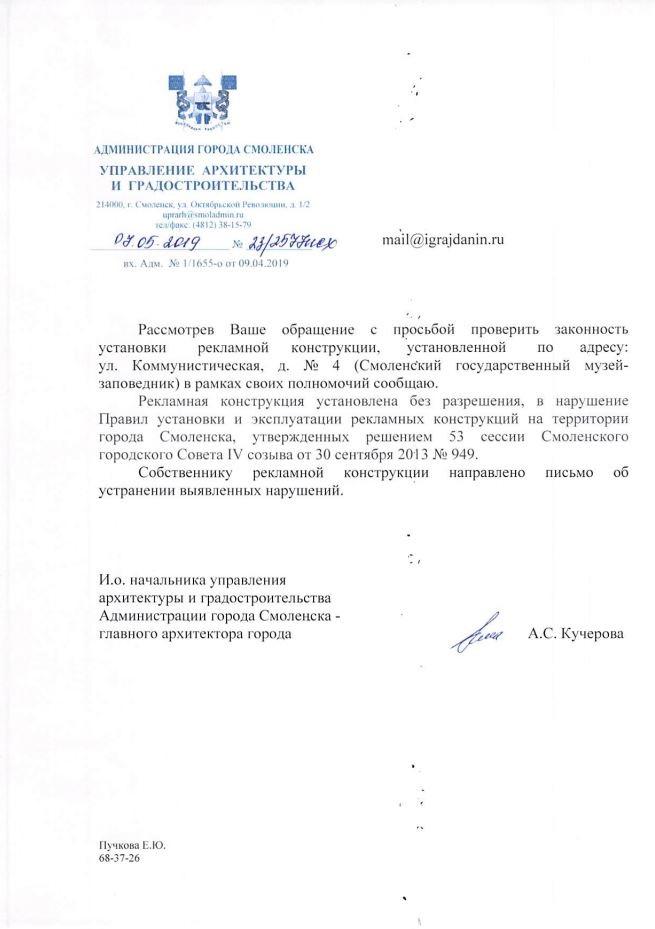 айГражданинОтправлено 09.04.2019: "Администрация города Смоленска"