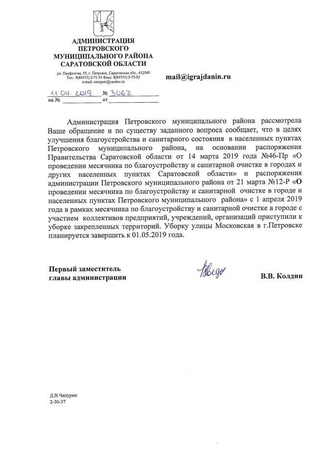 айГражданинОтправлено 09.04.2019: "Администрация Петровского муниципального района Саратовской области"