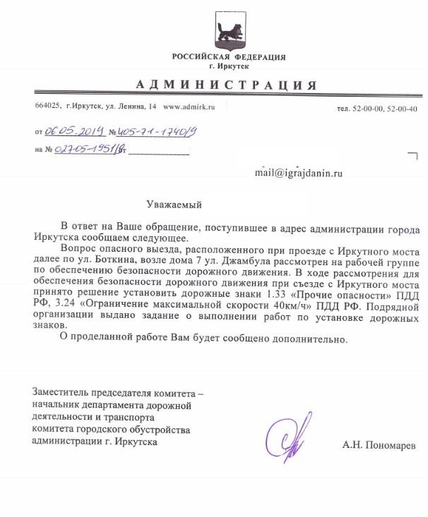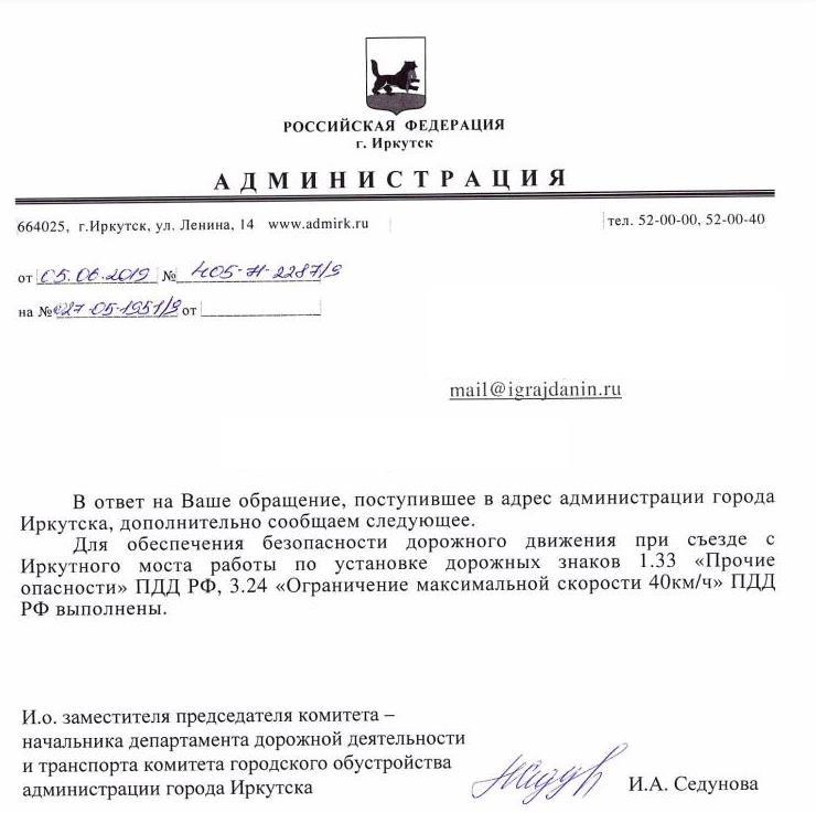 айГражданинОтправлено 09.04.2019: "Администрация города Иркутска"