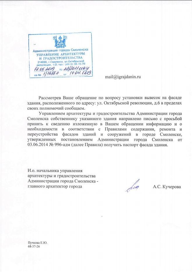 айГражданинОтправлено 09.04.2019: "Администрация города Смоленска"