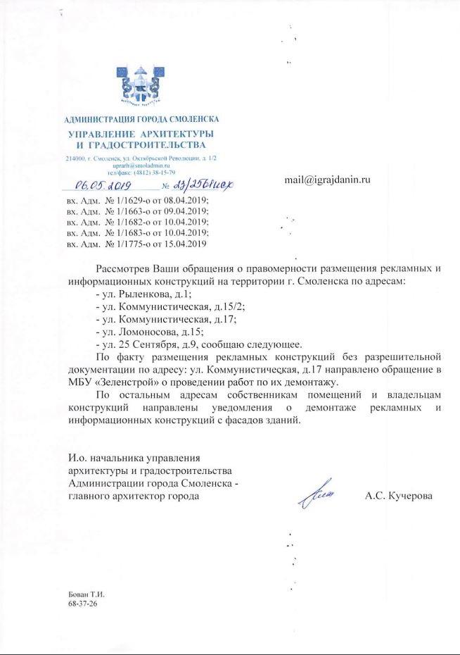 айГражданинОтправлено 22.05.2019: "Администрация города Смоленска"