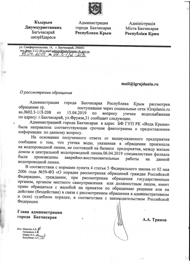 айГражданинОтправлено 09.04.2019: "Администрация города Бахчисарая Республики Крым"