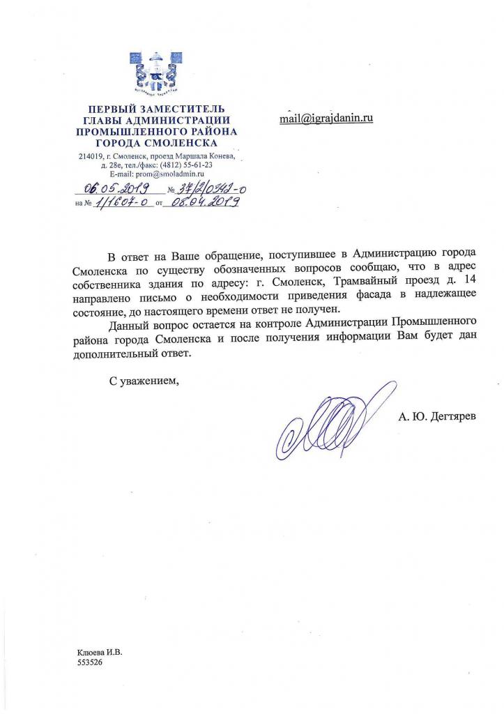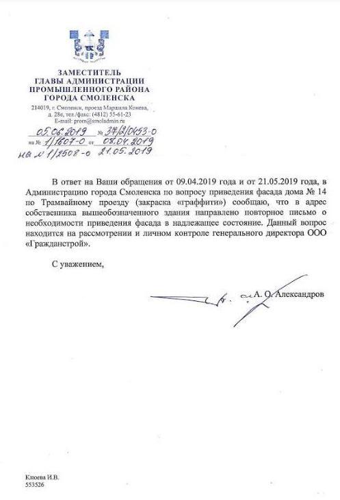 айГражданинОтправлено 21.05.2019: "Администрация города Смоленска"