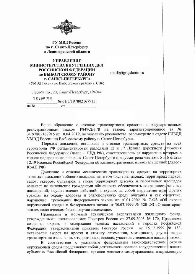 айГражданинОтправлено 09.04.2019: "УГИБДД по Санкт-Петербургу и Ленинградской области"