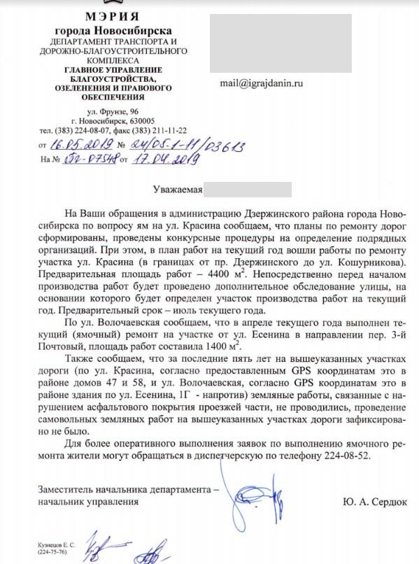 айГражданинОтправлено 09.04.2019: "администрация Дзержинского района г.Новосибирск"
