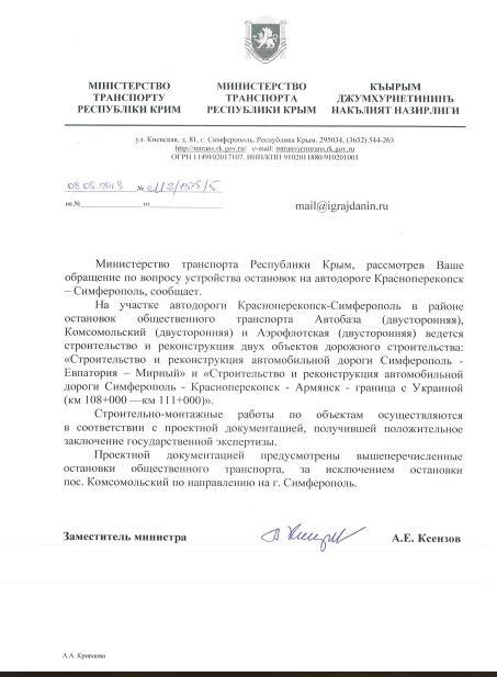айГражданинОтправлено 09.04.2019: "Государственный комитет дорожного хозяйства Республики Крым"