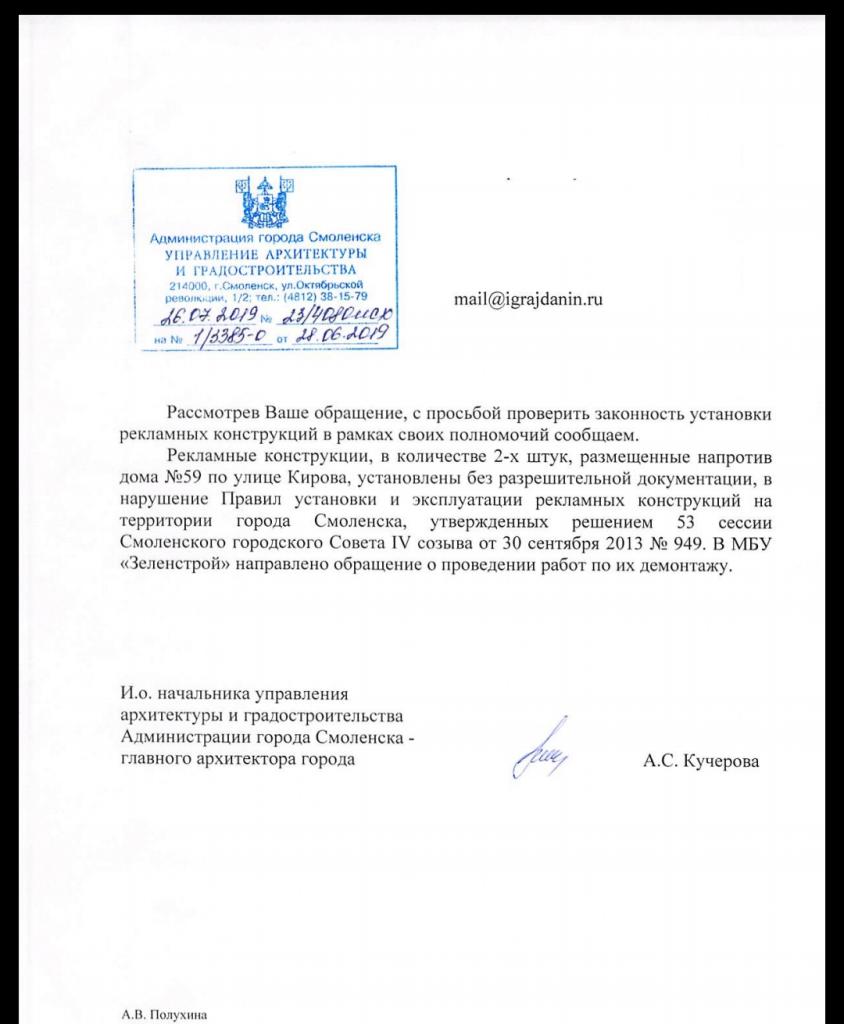 айГражданинОтправлено 28.06.2019: "Администрация города Смоленска"