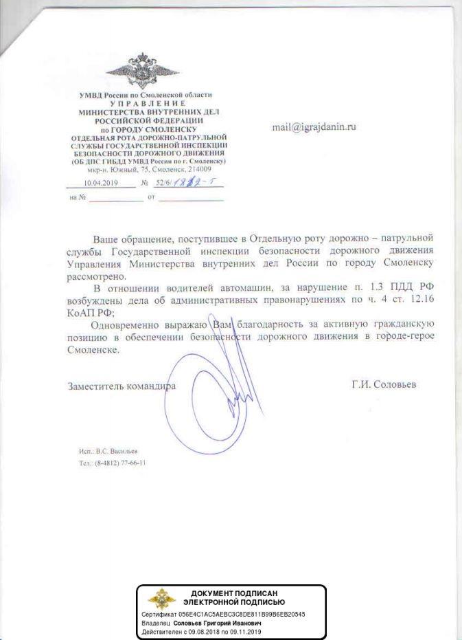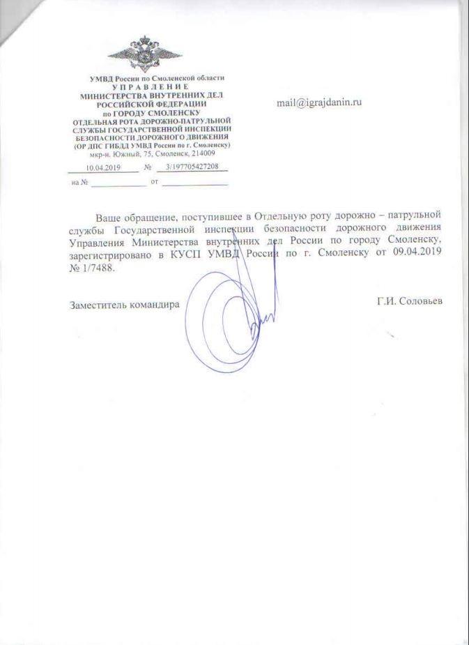 айГражданинОтправлено 09.04.2019: "УГИБДД УМВД России по Смоленской области"