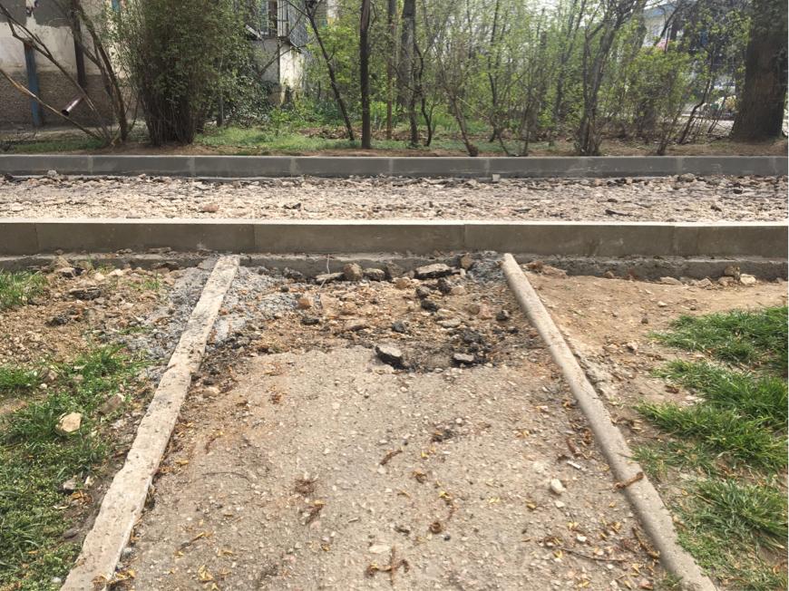 При проведении ремонтных работ дорожка, выходящая со двора дома 13 по улице Кожанова в сторону дома 15 перекрыта бордюром. Пожилым людям, инвалидам и людям с коляской переступить бордюр невозможно