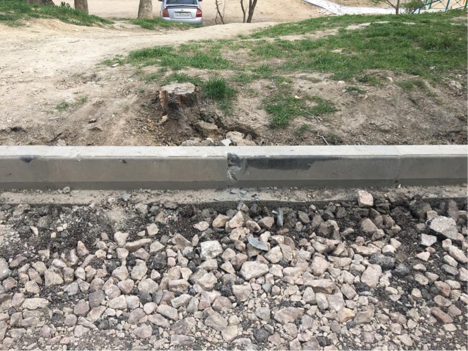 Во время выполнения дорожных работ поврежден бордюрный камень. Требует замены
